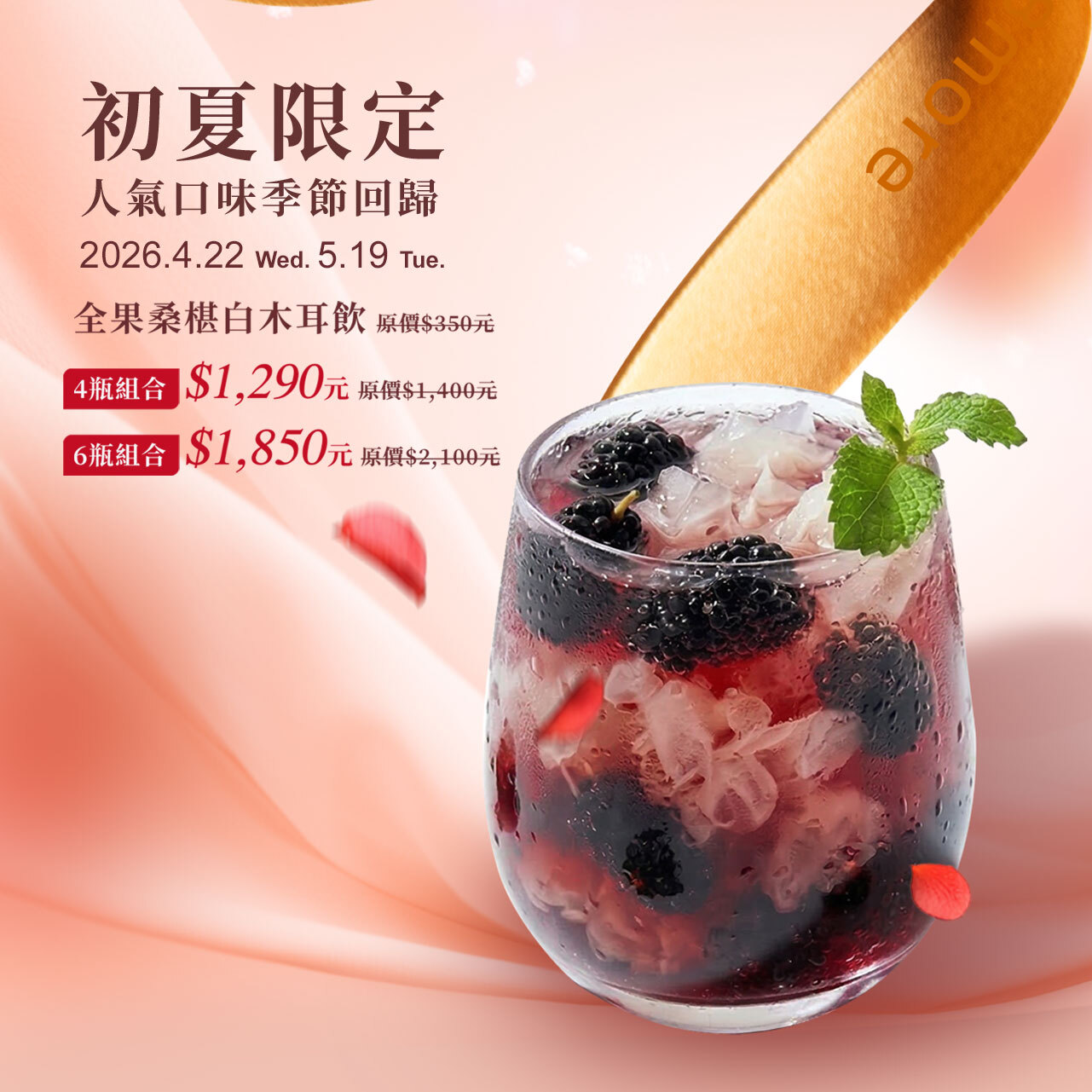 至2026-05-20T04:00:00.000+00:00截止 指定商品,私享禮賓季_全果桑椹白木耳飲4瓶組$1,290/6瓶組$1,850