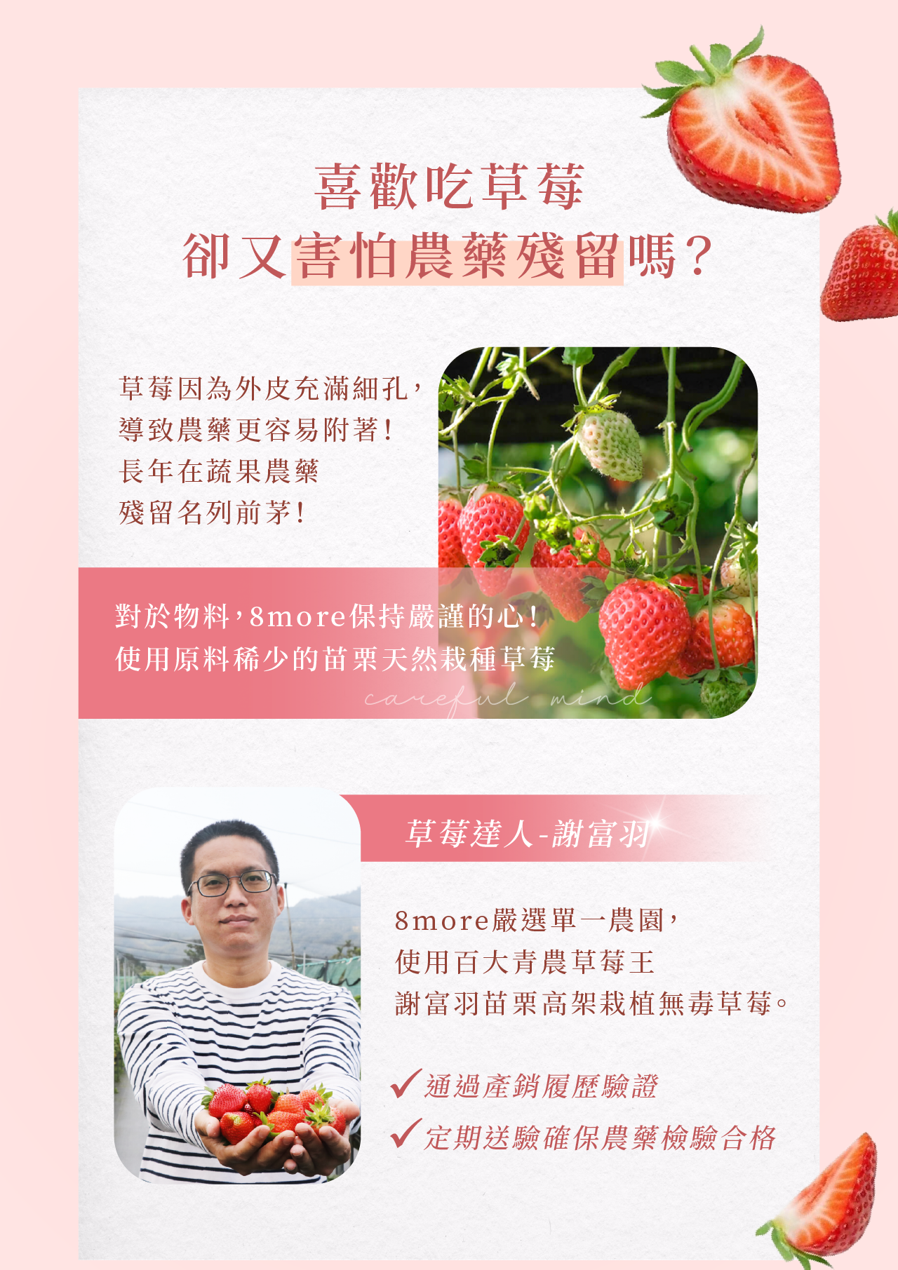 百大青農-謝富羽」出品,嚴選無毒有機美姬草莓