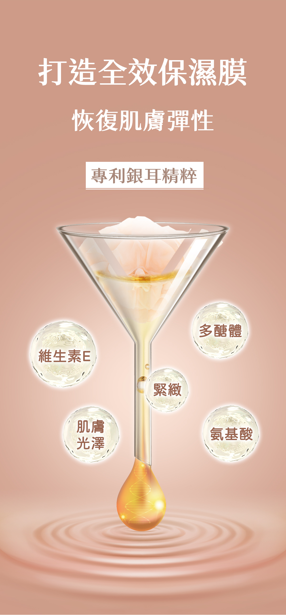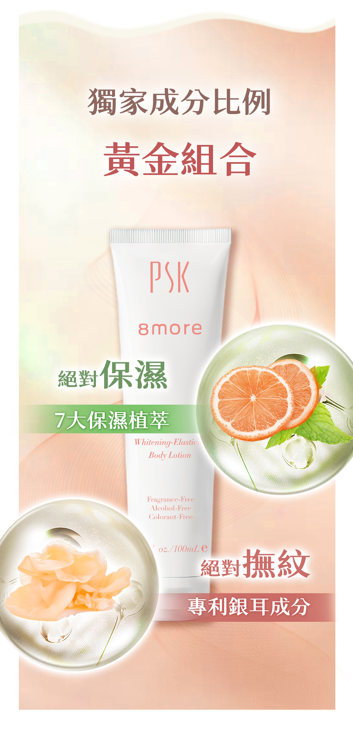添加銀耳萃取與Regestril™專利撫紋成分,讓肌膚長效保濕同時恢復肌膚彈性,並淡化紋路。