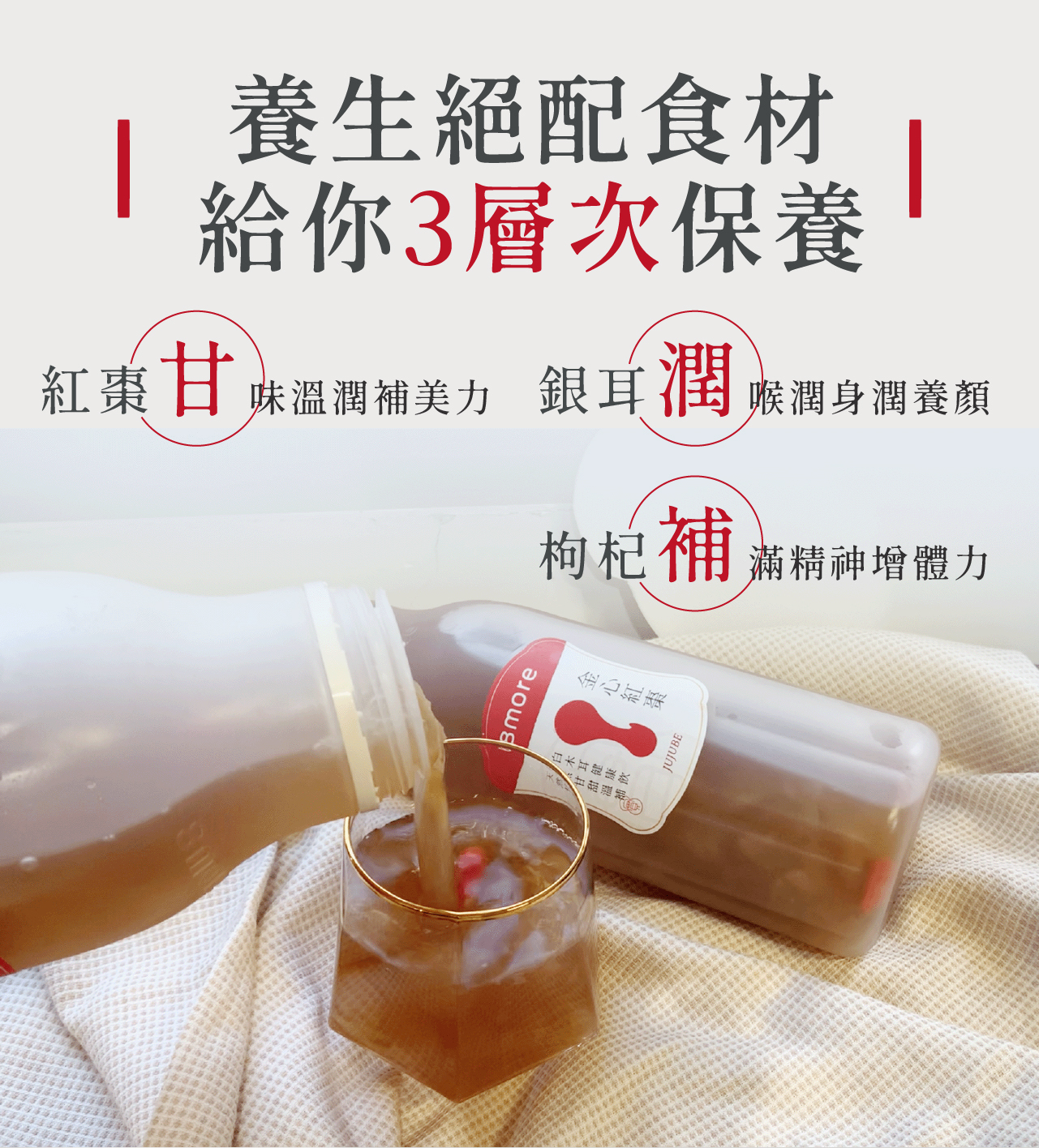 ✔ 紅棗.銀耳.枸杞 3層次保養