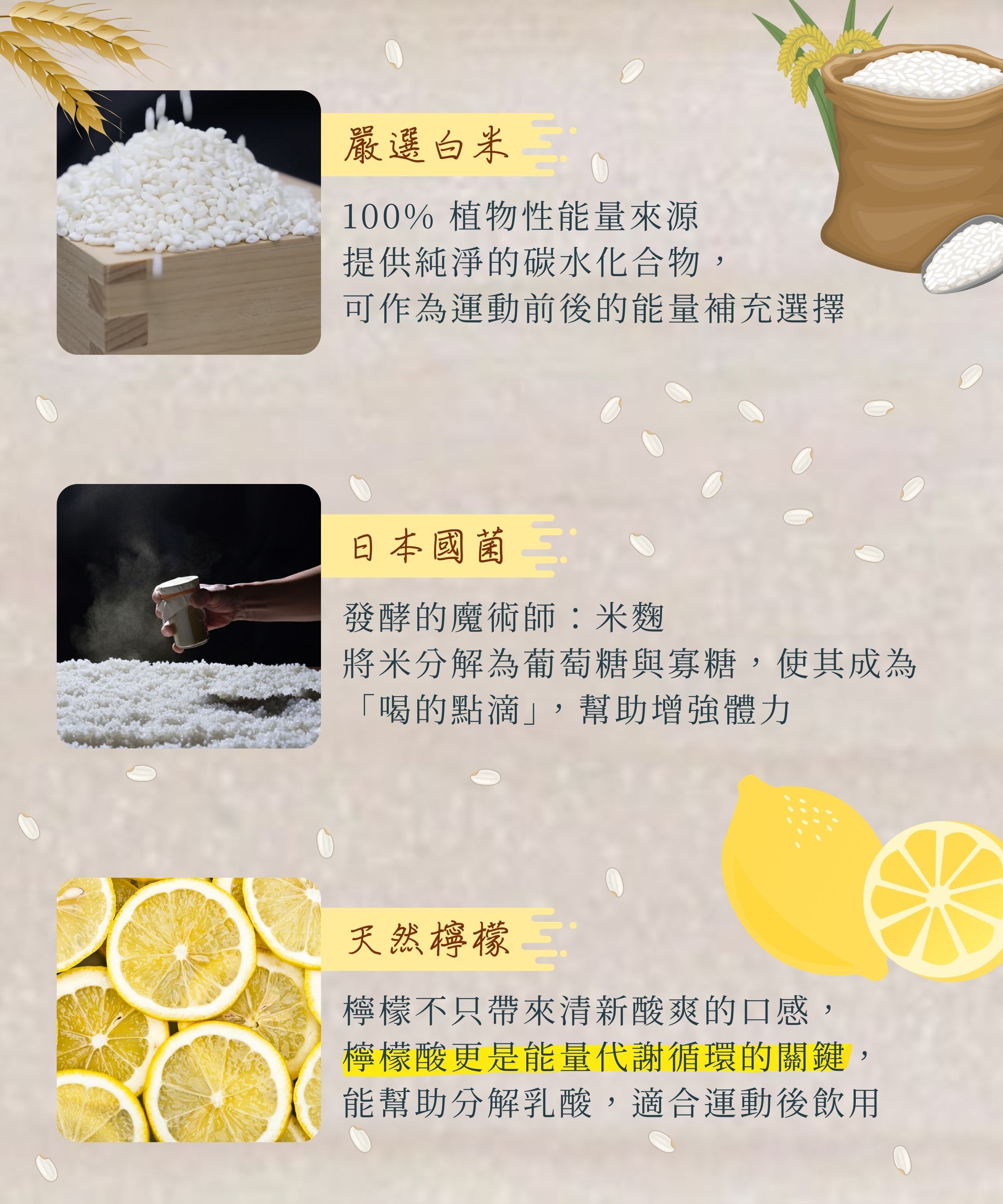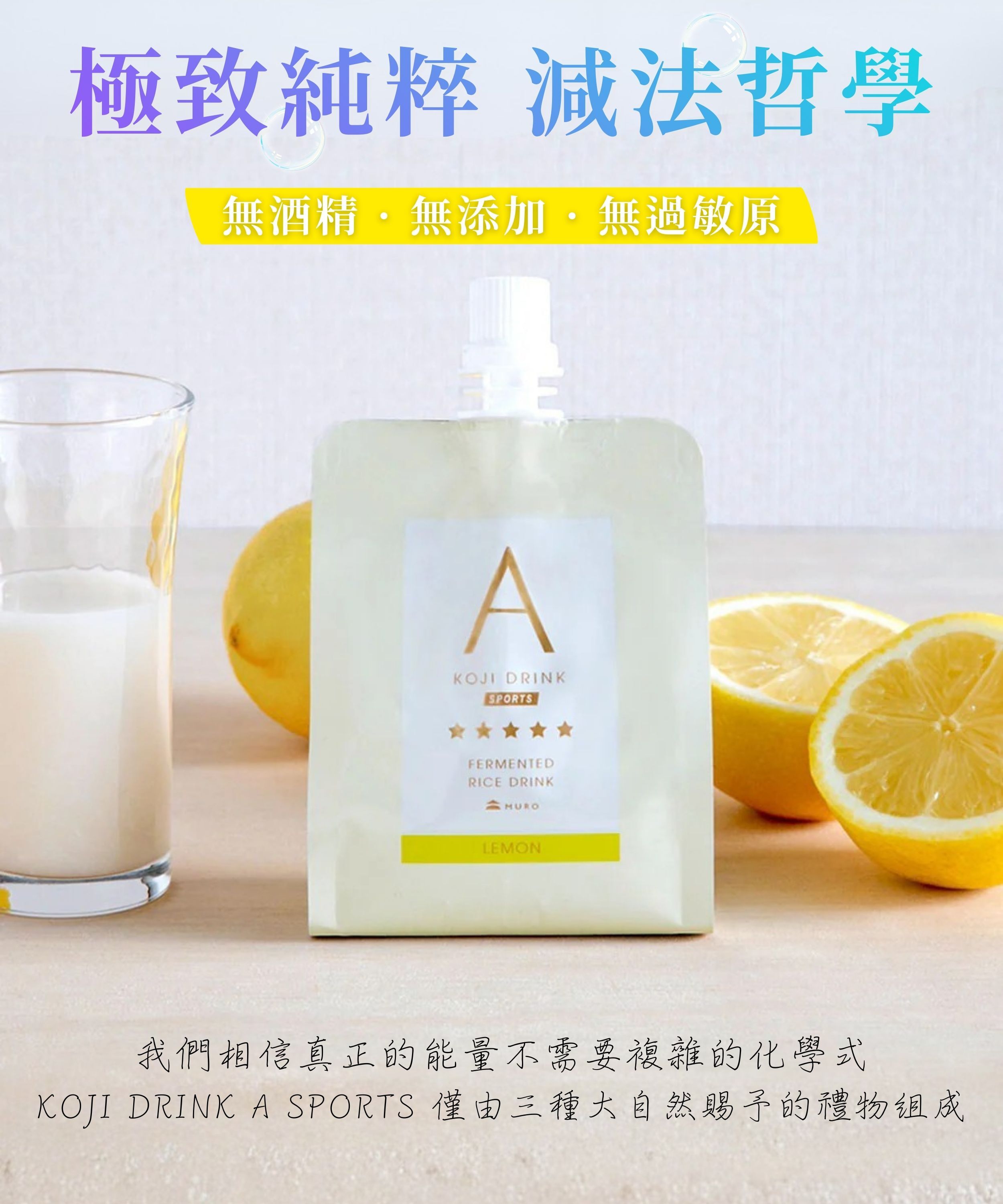 ✨成分極致天然,僅有米、米麴、天然檸檬;100% 植物性、無酒精、無添加