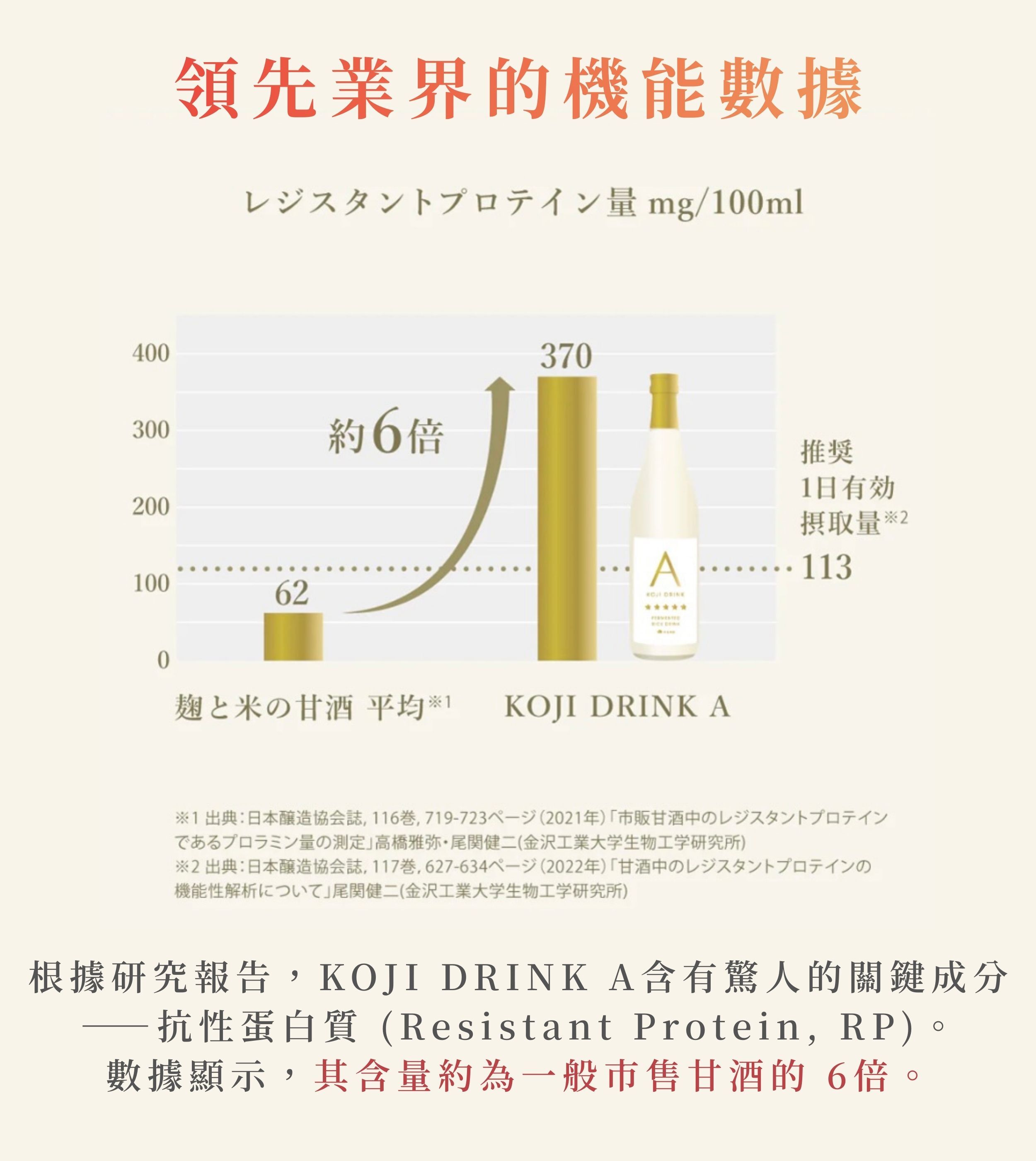 ✨與金澤工業大學共同研發,抗性蛋白含量高達日本市售甘酒 6倍