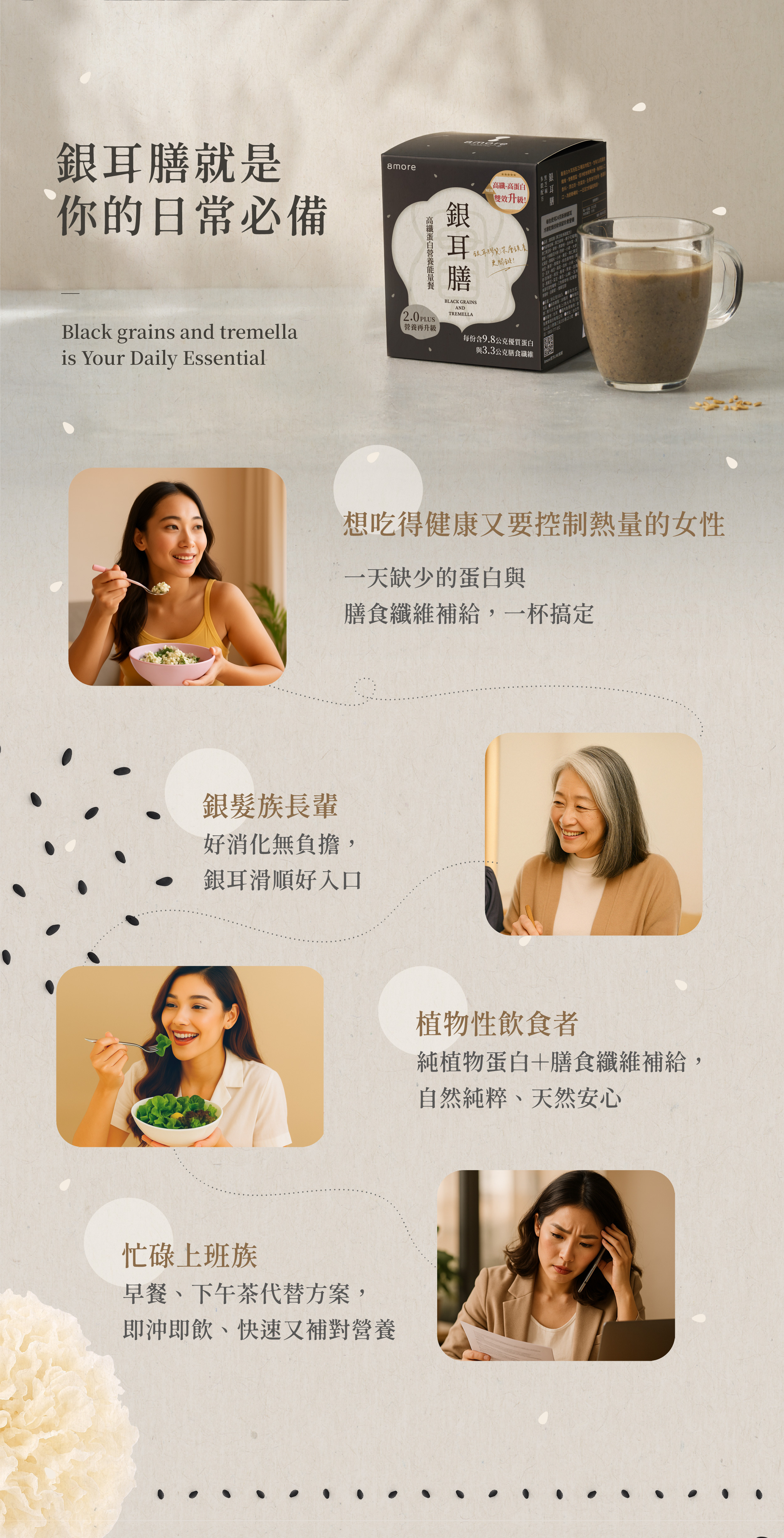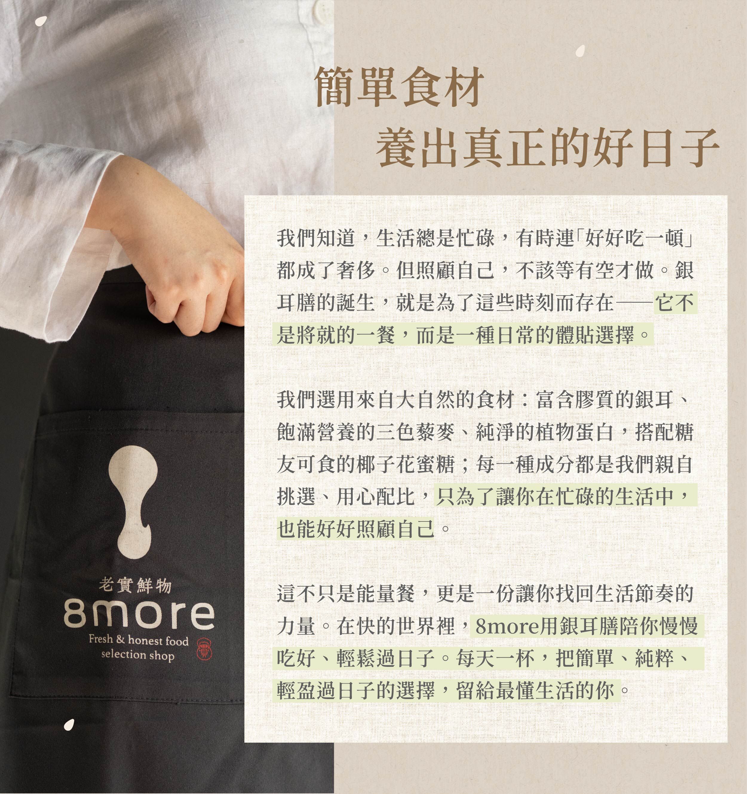 ✔ 添加新鮮銀耳、不加抗結塊劑,成分天然,長期吃得安心